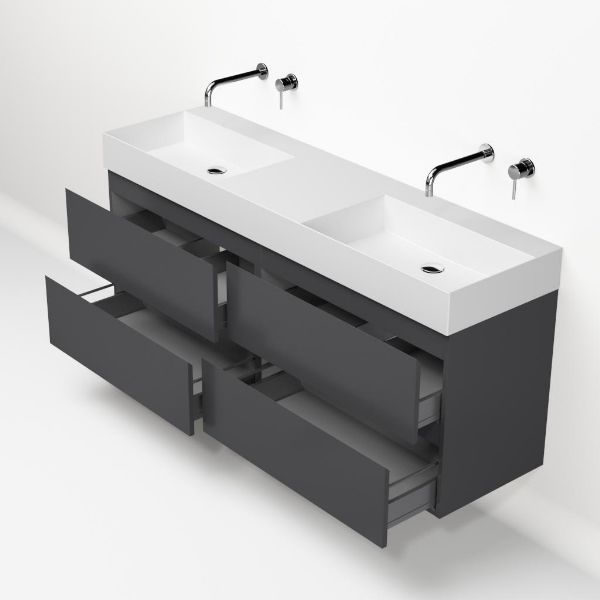 | | Bellanti Gisella/Azzurra badmeubel 160x46 4 softclose laden mat antraciet greeploos keramiek dubbele wastafel mat wit zonder kraangaten |