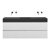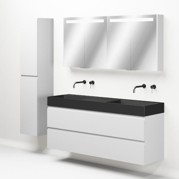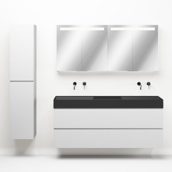 Greeploos badkamermeubel in de kleur wit mat is 160 cm breed. De wastafel is vervaardig in keramiek en heeft de kleur antraciet mat keramiek. Dit badkamermeubel met deze wastafel is leverbaar tussen de 60 cm t/m 160 cm
