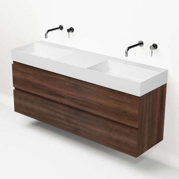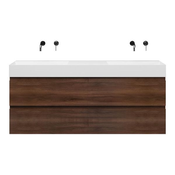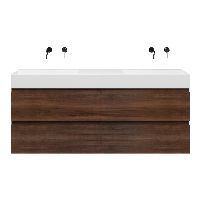 | | Bellanti Gisella/Azzurra badmeubel 160x46 4 softclose laden walnoot greeploos keramiek dubbele wastafel wit zonder kraangaten |