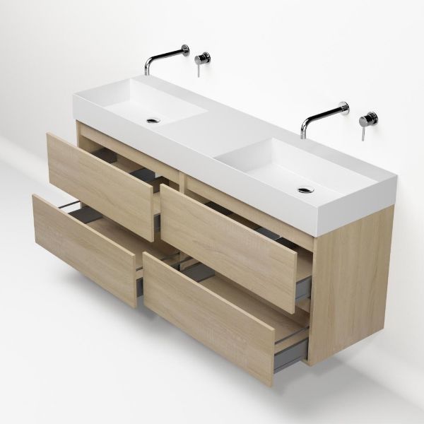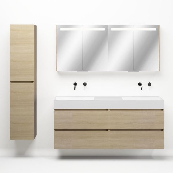 | Bellanti Elena/Azzurra badmeubel 160x46 4 softclose laden eiken licht greeploos keramiek dubbele wastafel mat wit zonder kraangaten |