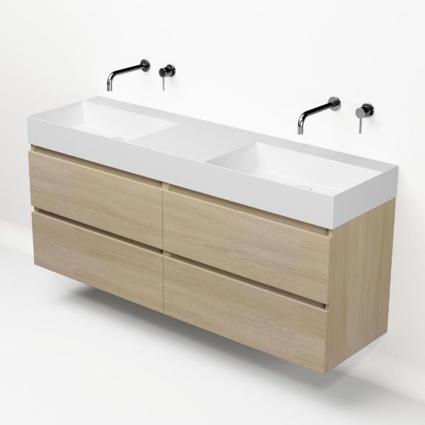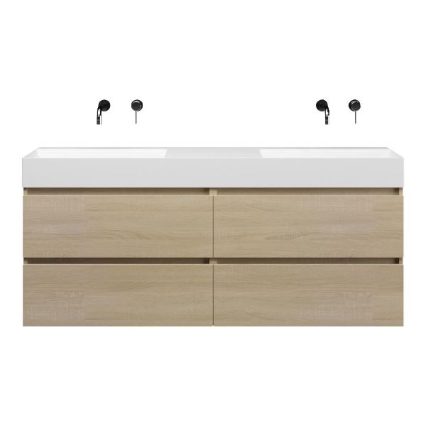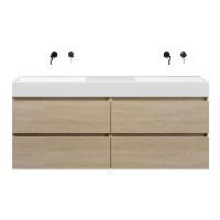 | | Bellanti Elena/Azzurra badmeubel 160x46 4 softclose laden eiken licht greeploos keramiek dubbele wastafel mat wit zonder kraangaten |