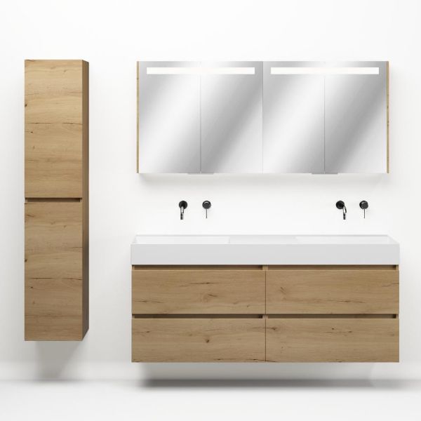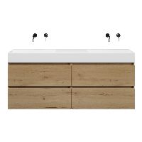 | | Bellanti Elena/azzurra badmeubel 160x46 4 softclose laden eiken natuur greeploos keramiek dubbele wastafel wit zonder kraangaten |