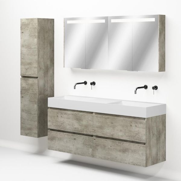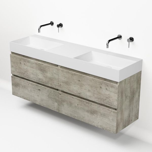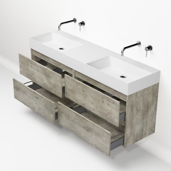 | | Bellanti Elena/azzurra badmeubel 160x46 4 softclose laden steigerhout look grijs greeploos keramiek dubbele wastafel wit zonder kraangaten |