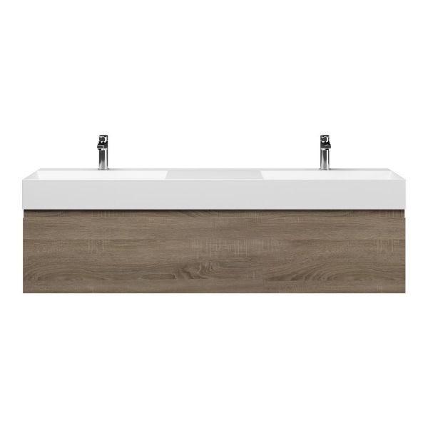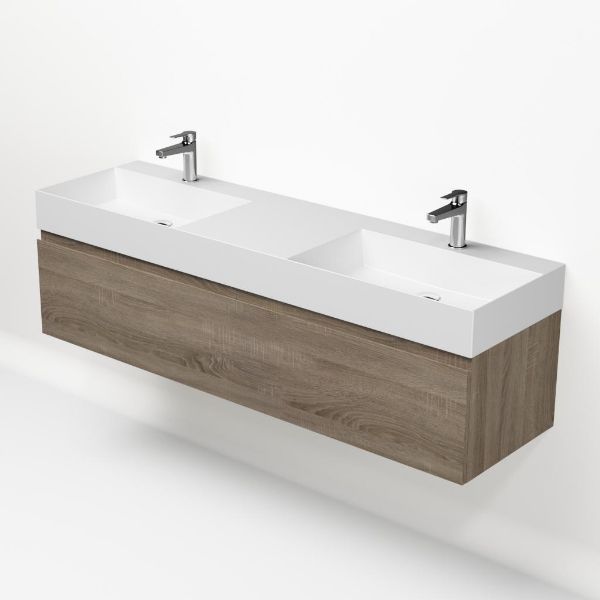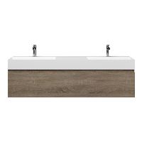 | Bellanti Solo/Azzurra badmeubel 160x46 2 softclose laden eiken donker greeploos keramiek dubbele wastafel mat wit 2 kraangaten |