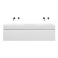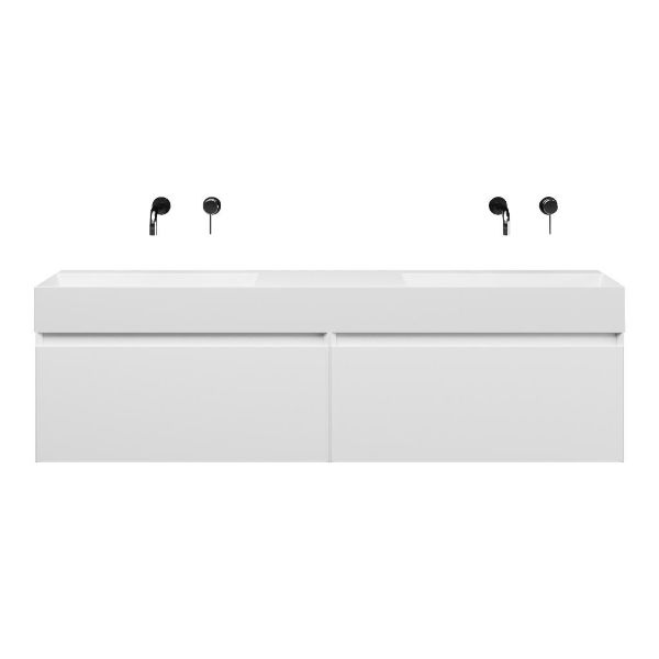 Greeploos badkamermeubel in de kleur wit mat is 160 cm breed. De wastafel is vervaardig in keramiek en heeft de kleur wit keramiek. Dit badkamermeubel met deze wastafel is leverbaar tussen de 60 cm t/m 160 cm