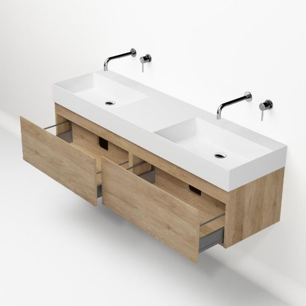 | | Bellanti Solo/azzurra badmeubel 160x46 2 softclose laden olm greeploos keramiek dubbele wastafel wit zonder kraangaten |