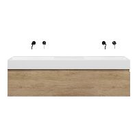 Greeploos badkamermeubel in de kleur olm is 160 cm breed. De wastafel is vervaardig in keramiek en heeft de kleur wit keramiek. Dit badkamermeubel met deze wastafel is leverbaar tussen de 60 cm t/m 160 cm