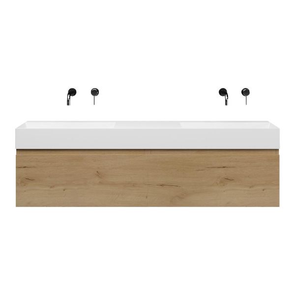 | | Bellanti Solo/azzurra badmeubel 160x46 2 softclose laden eiken natuur greeploos keramiek dubbele wastafel wit zonder kraangaten |