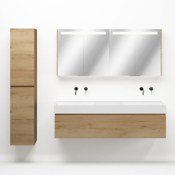 | Bellanti Solo/azzurra badmeubel 160x46 2 softclose laden eiken natuur greeploos keramiek dubbele wastafel wit zonder kraangaten |