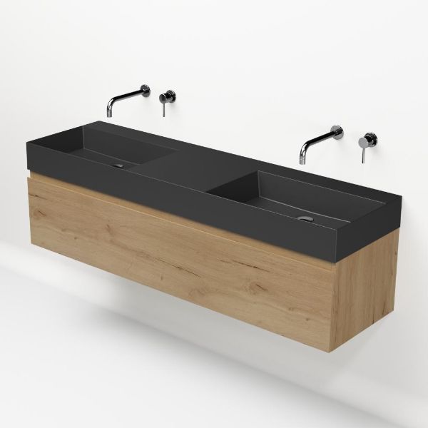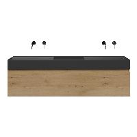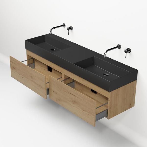 | | Bellanti Solo/Azzurra badmeubel 160x46 2 softclose laden eiken natuur greeploos keramiek dubbele wastafel antraciet zonder kraangaten |