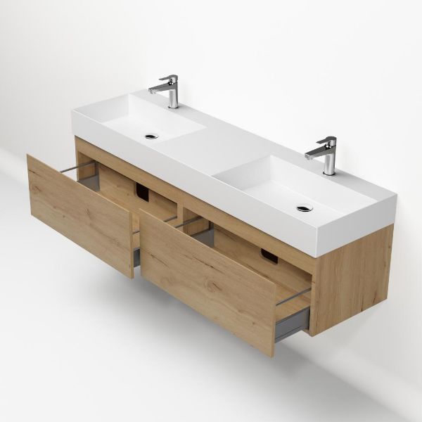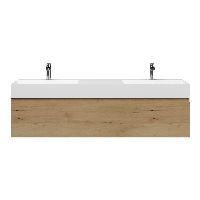 | | Bellanti Solo/Azzurra badmeubel 160x46 2 softclose laden eiken natuur greeploos keramiek dubbele wastafel mat wit 2 kraangaten |