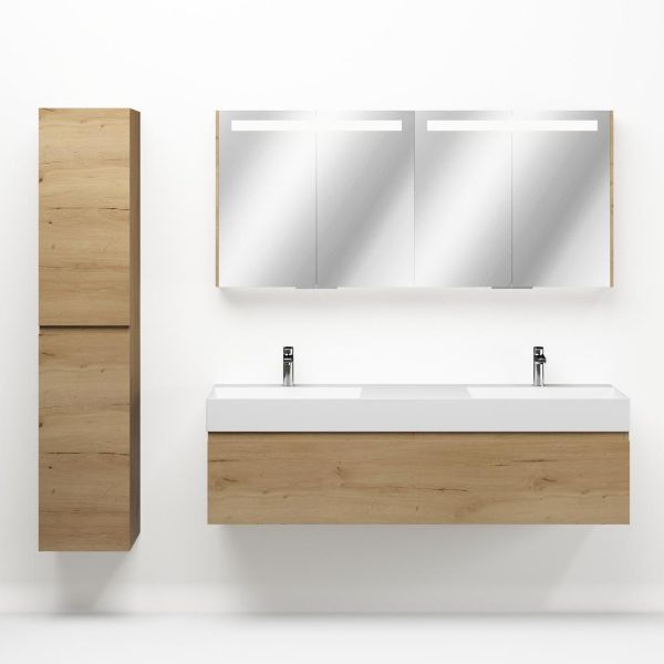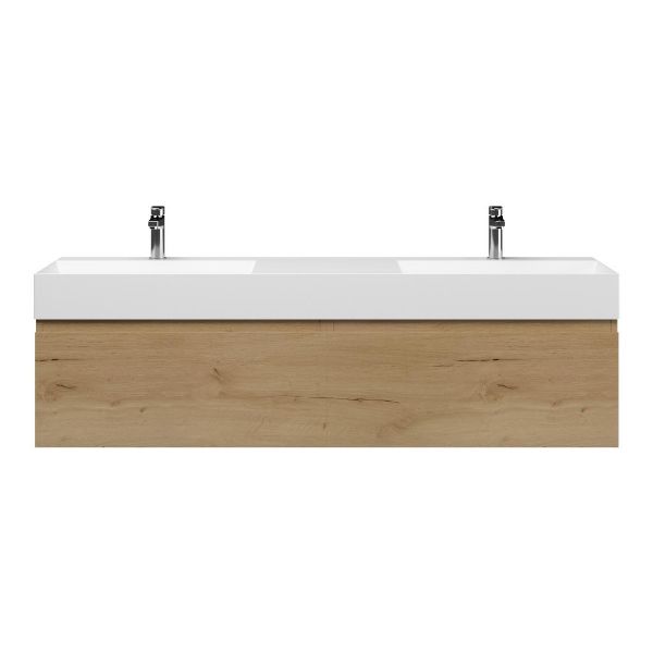 | Bellanti Solo/Azzurra badmeubel 160x46 2 softclose laden eiken natuur greeploos keramiek dubbele wastafel mat wit 2 kraangaten |