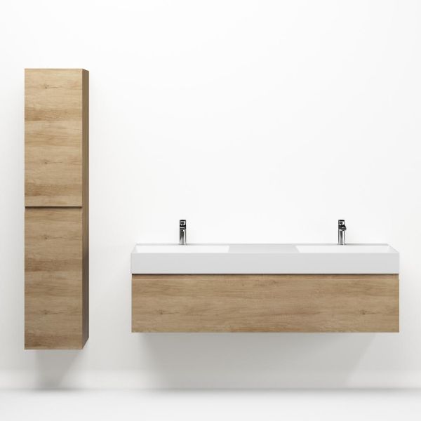 Greeploos badkamermeubel in de kleur olm is 160 cm breed. De wastafel is vervaardig in keramiek en heeft de kleur wit mat keramiek. Dit badkamermeubel met deze wastafel is leverbaar tussen de 60 cm t/m 160 cm