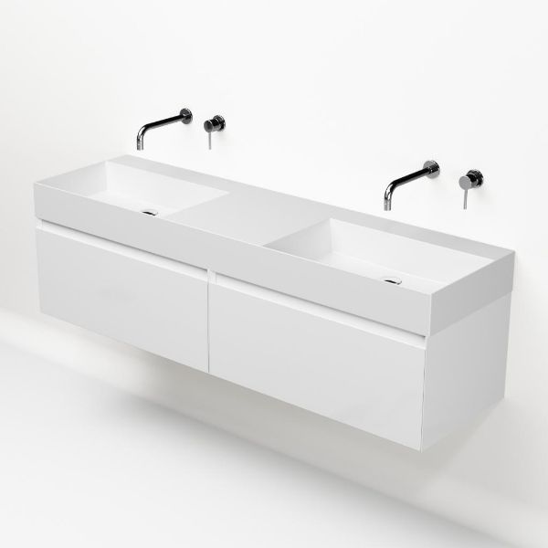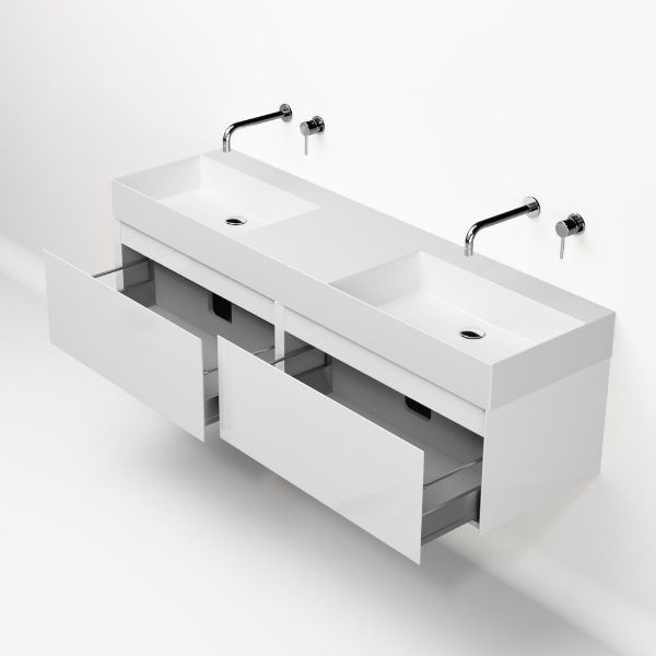 | | Bellanti Solo/Azzurra badmeubel 160x46 2 softclose laden hoogglans wit greeploos keramiek dubbele wastafel mat wit zonder kraangaten |