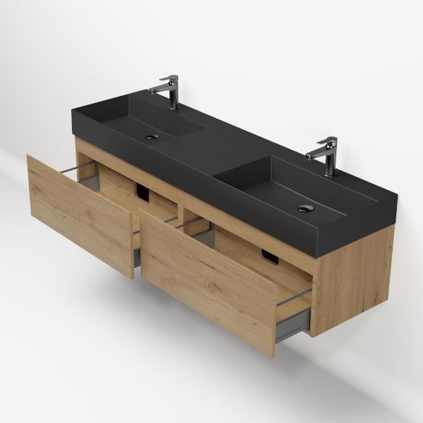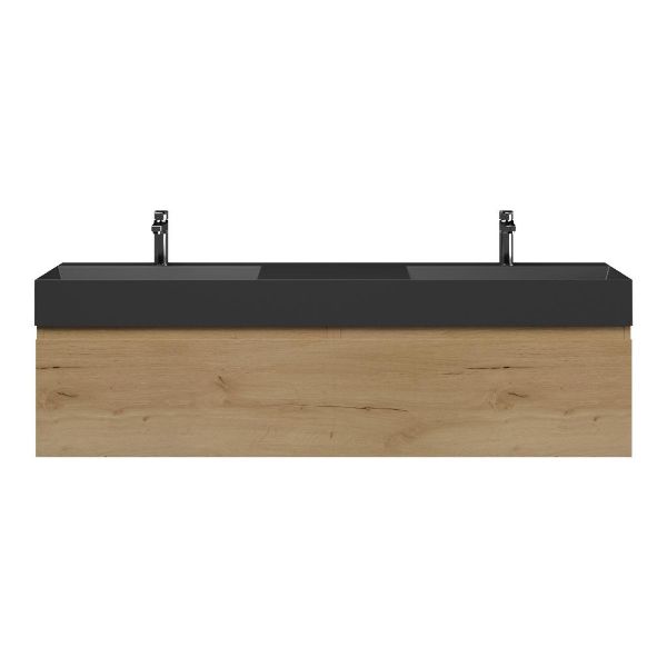 | Bellanti Solo/Azzurra badmeubel 160x46 2 softclose laden eiken natuur greeploos keramiek dubbele wastafel antraciet 2 kraangaten |