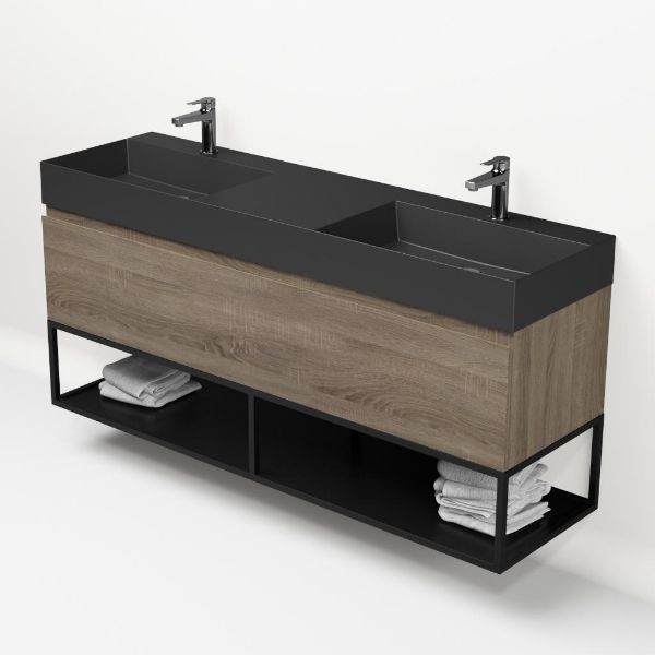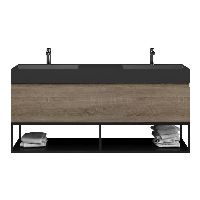 | Bellanti Solo/Tela/Azzurra badmeubel 160x46 2 softclose laden eiken donker greeploos keramiek dubbele wastafel antraciet 2 kraangaten met mat zwart metalen frame |