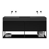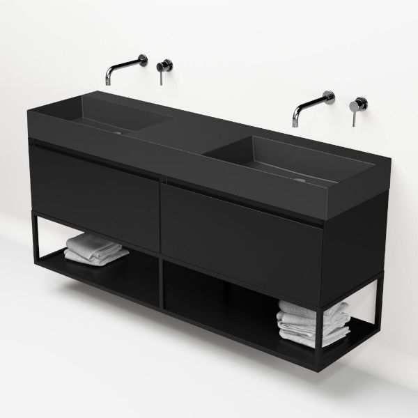 | | Bellanti Solo/Tela/Azzurra badmeubel 160x46 2 softclose laden mat zwart greeploos keramiek dubbele wastafel antraciet zonder kraangaten met mat zwart metalen frame |