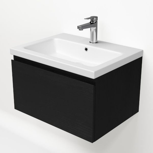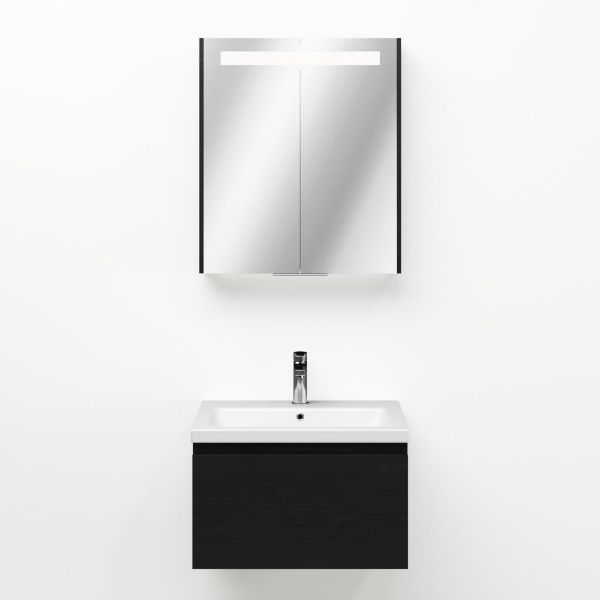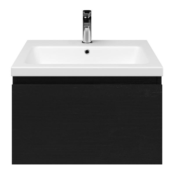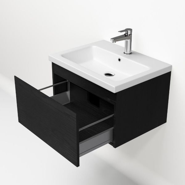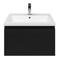 | Bellanti Solo/Amelia badmeubel 60x46 1 softclose lade mat zwart eiken greeploos keramische wastafel wit mat met 1 kraangat |