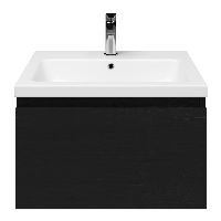 | | Bellanti Solo/Amelia badmeubel 60x46 1 softclose lade mat zwart eiken greeploos keramische wastafel wit glans met 1 kraangat |