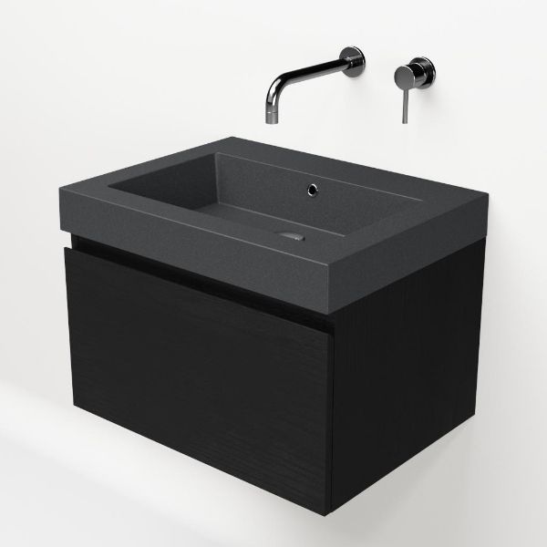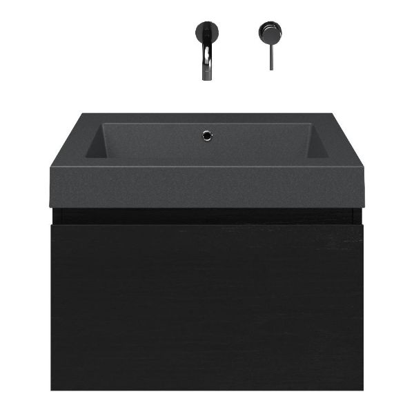 | | Bellanti Solo/Esta-Q badmeubel 60x46 1 softclose lade mat zwart eiken greeploos quartz wastafel mat grijs zonder kraangaten |