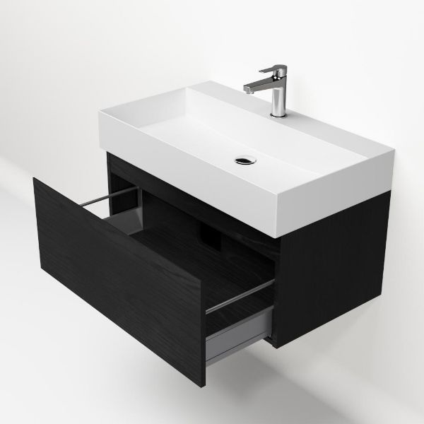 | | Bellanti Solo/Azzurra badmeubel 80x46 1 softclose lade mat zwart eiken greeploos keramische wastafel wit mat met 1 kraangat |