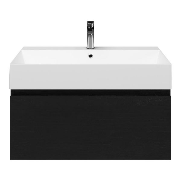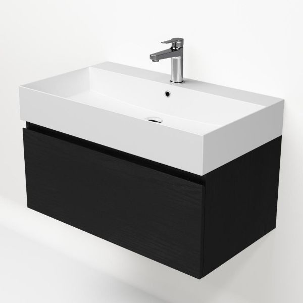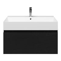 | | Bellanti Solo/Azzurra badmeubel 80x46 1 softclose lade mat zwart eiken greeploos keramische wastafel wit mat met 1 kraangat |