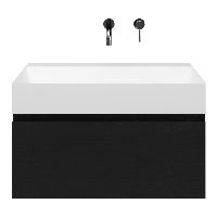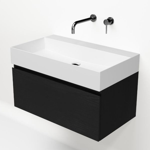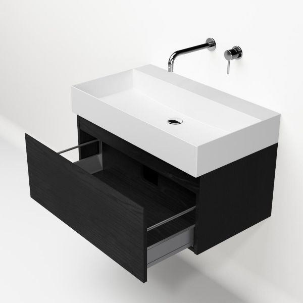 | | Bellanti Solo/Azzurra badmeubel 80x46 1 softclose lade mat zwart eiken greeploos keramische wastafel wit mat zonder kraangaten |