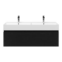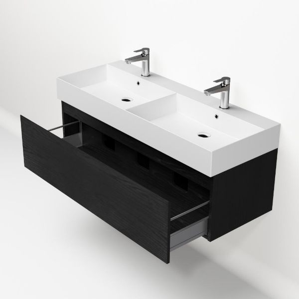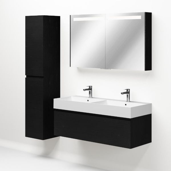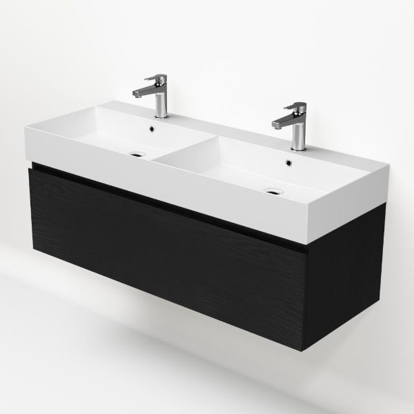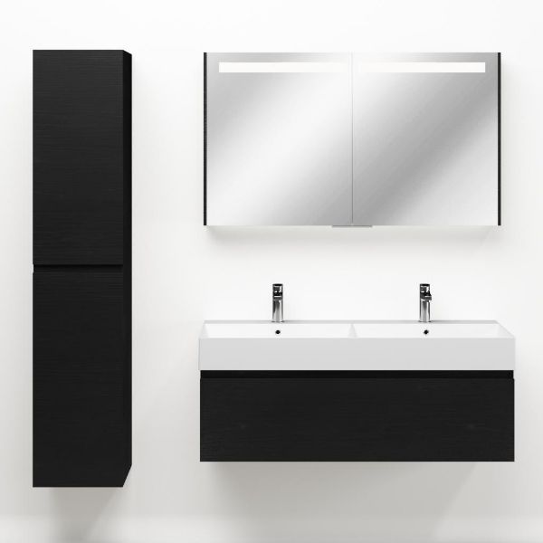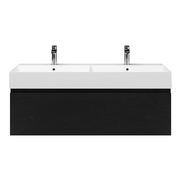 | Bellanti Solo /Azzurra badmeubel 120x46 1 softclose lade mat zwart eiken greeploos keramische wastafel dubbel wit mat met 2 kraangaten |