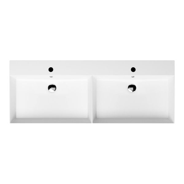 | | Bellanti Solo /Azzurra badmeubel 120x46 1 softclose lade mat zwart eiken greeploos keramische wastafel dubbel wit mat met 2 kraangaten |