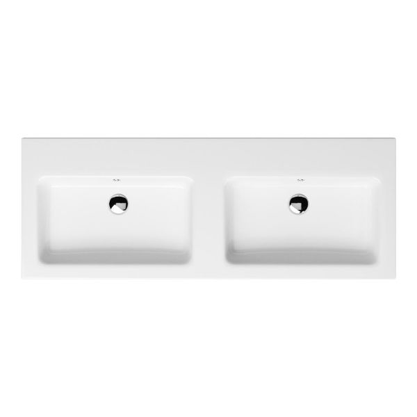 | | Bellanti Solo/Amelia badmeubel 120x46 1 softclose lade mat zwart eiken greeploos keramische wastafel dubbel wit glans zonder kraangaten |