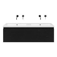 | | Bellanti Solo/Amelia badmeubel 120x46 1 softclose lade mat zwart eiken greeploos keramische wastafel dubbel wit mat zonder kraangaten |