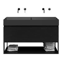 | | Bellanti Solo/Tela/Azzurra badmeubel 120x46 1 softclose lade mat zwart eiken greeploos keramische wastafel dubbel antraciet mat zonder kraangaten met mat zwart metalen frame |