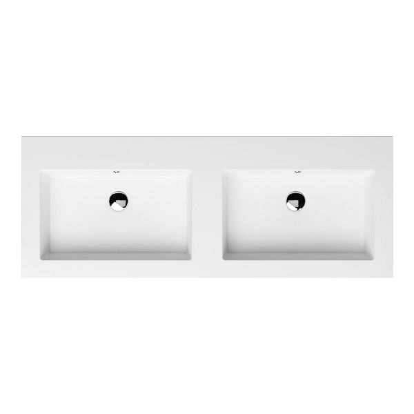 Greeploos badkamermeubel in de kleur zwart mat eiken is 120 cm breed. De wastafel is vervaardig in polystone en heeft de kleur wit. Dit badkamermeubel met deze wastafel is leverbaar tussen de 60 cm t/m 160 cm