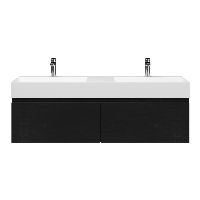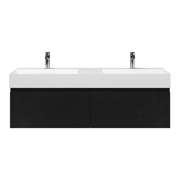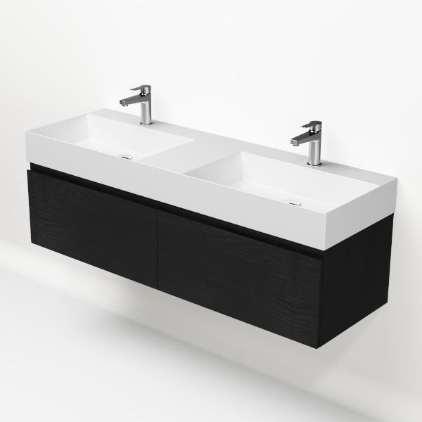 | | Bellanti Solo/Azzurra badmeubel 140x46 2 softclose laden mat zwart eiken greeploos keramische wastafel dubbel wit mat met 2 kraangaten |