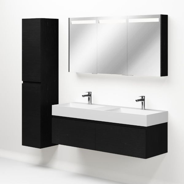 | Bellanti Solo/Azzurra badmeubel 140x46 2 softclose laden mat zwart eiken greeploos keramische wastafel dubbel wit mat met 2 kraangaten |