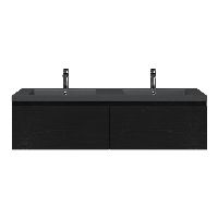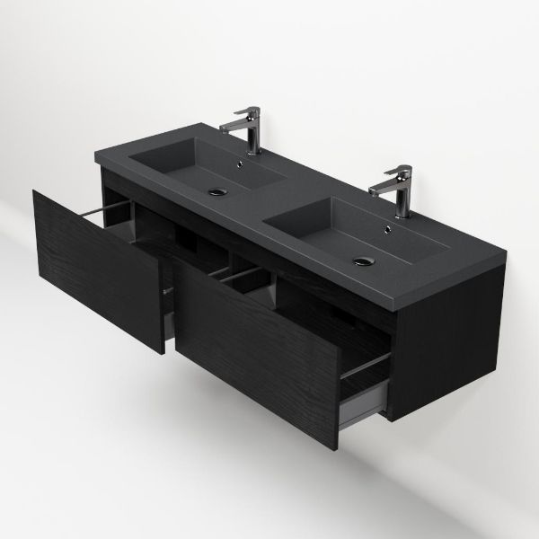| | Bellanti Solo/Esta-Q badmeubel 140x46 2 softclose laden mat zwart eiken greeploos polystone wastafel dubbel mat grijs met 2 kraangaten |