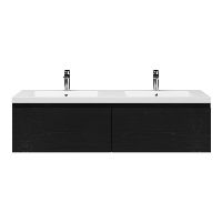 | | Bellanti Solo/Esta-Q badmeubel 140x46 2 softclose laden mat zwart eiken greeploos polystone wastafel dubbel mat wit met 2 kraangaten |
