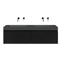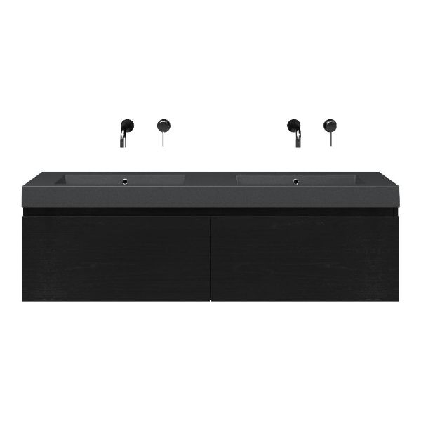 | | Bellanti Solo/Esta-Q badmeubel 140x46 2 softclose laden mat zwart eiken greeploos quartz wastafel dubbel mat grijs zonder kraangaten |