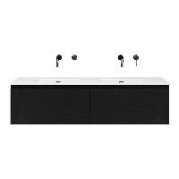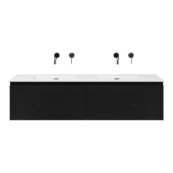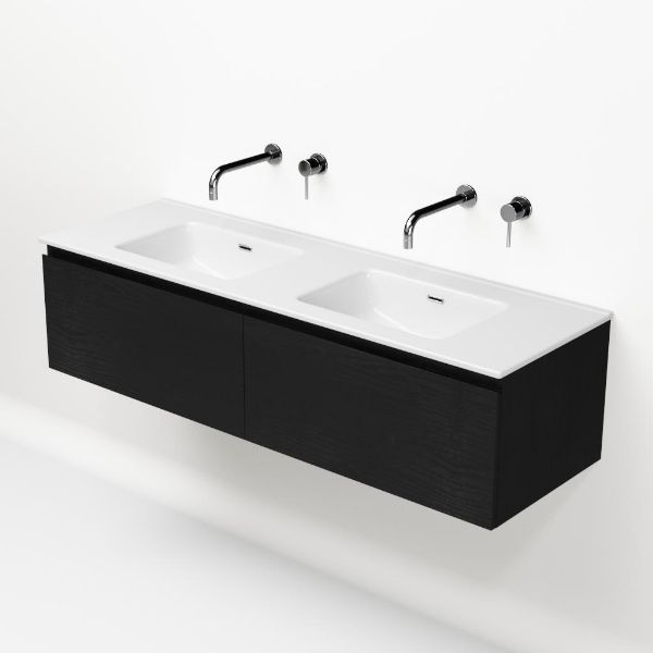 | Bellanti Solo/Etna badmeubel 140x46 2 softclose laden mat zwart eiken greeploos keramische wastafel dubbel wit zonder kraangat |
