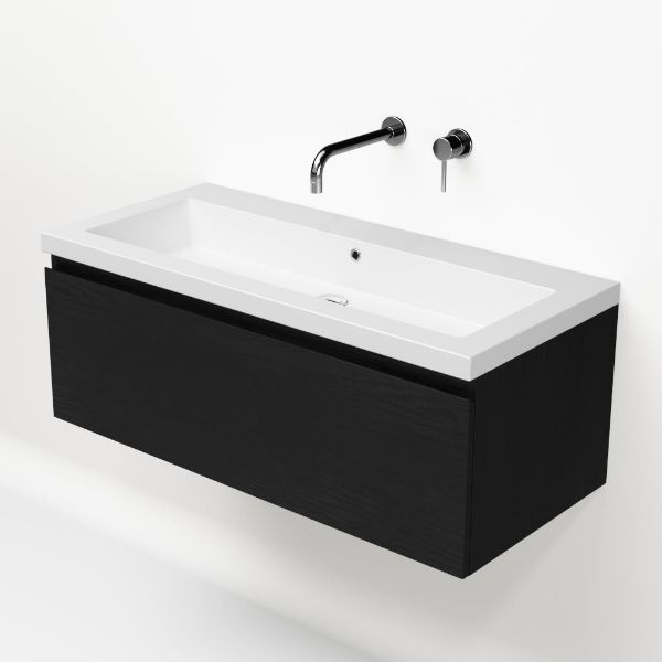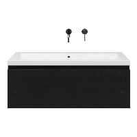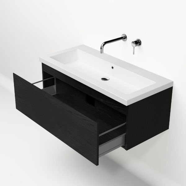 | | Bellanti Solo/Esta-Q badmeubel 100x46 1 softclose lade mat zwart eiken greeploos quartz wastafel mat wit zonder kraangat |