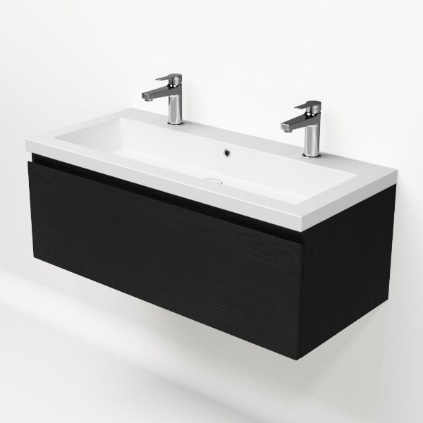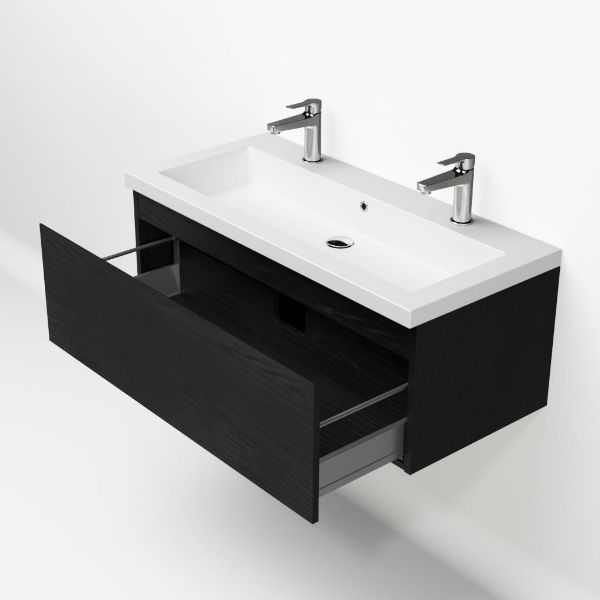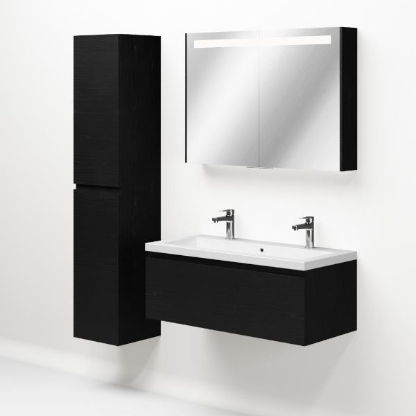 | | Bellanti Solo/Esta-Q badmeubel 100x46 1 softclose lade mat zwart eiken greeploos wastafel mat wit met 2 kraangaten |