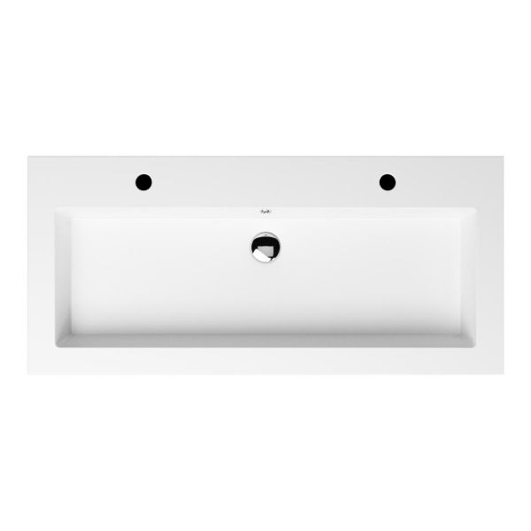 Greeploos badkamermeubel in de kleur zwart mat eiken is 100 cm breed. De wastafel is vervaardig in quartz en heeft de kleur wit mat quartz. Dit badkamermeubel met deze wastafel is leverbaar tussen de 60 cm t/m 160 cm