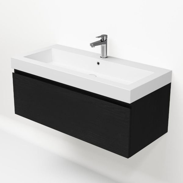 | | Bellanti Solo/Esta badmeubel 100x46 1 softclose lade mat zwart eiken greeploos polystone wastafel wit met 1 kraangat |