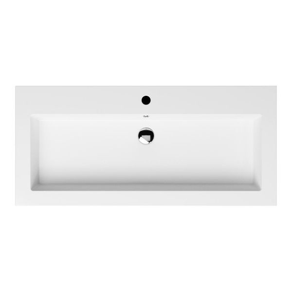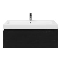 Greeploos badkamermeubel in de kleur zwart mat eiken is 100 cm breed. De wastafel is vervaardig in polystone en heeft de kleur wit. Dit badkamermeubel met deze wastafel is leverbaar tussen de 60 cm t/m 160 cm