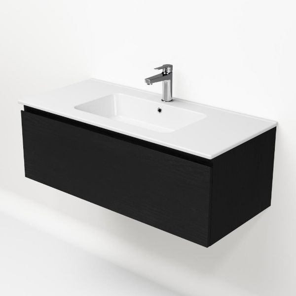 | | Bellanti Solo/Quadra badmeubel 100x46 1 softclose lade mat zwart eiken greeploos keramische wastafel wit met 1 kraangat |