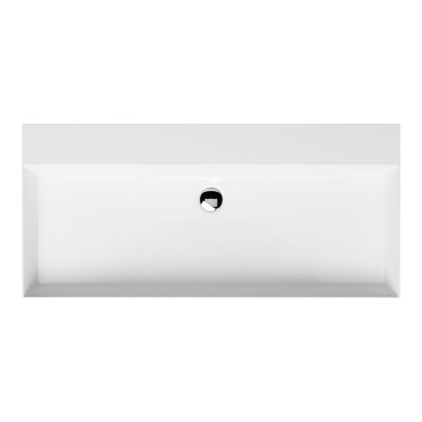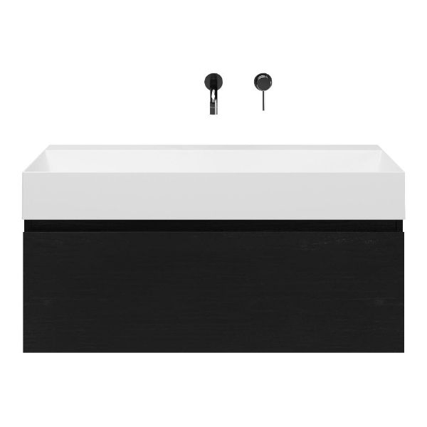 Greeploos badkamermeubel in de kleur zwart mat eiken is 100 cm breed. De wastafel is vervaardig in keramiek en heeft de kleur wit keramiek. Dit badkamermeubel met deze wastafel is leverbaar tussen de 60 cm t/m 160 cm