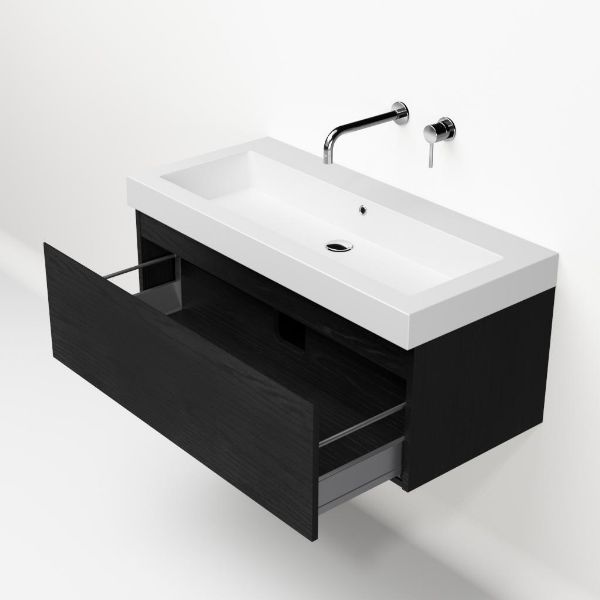 | | Bellanti Solo/Esta-Q badmeubel 100x46 1 softclose lade mat zwart eiken greeploos quartz wastafel mat wit zonder kraangaten |
