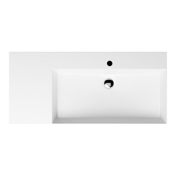 Greeploos badkamermeubel in de kleur zwart mat eiken is 100 cm breed. De wastafel is vervaardig in keramiek en heeft de kleur wit mat keramiek. Dit badkamermeubel met deze wastafel is leverbaar tussen de 60 cm t/m 140 cm