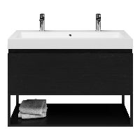 | | Bellanti Solo/Tela/Esta-Q badmeubel 100x46 1 softclose lade mat zwart eiken greeploos quartz wastafel mat wit met 2 kraangaten met mat zwart metalen frame |