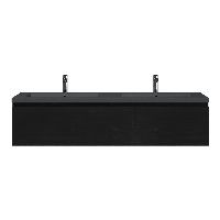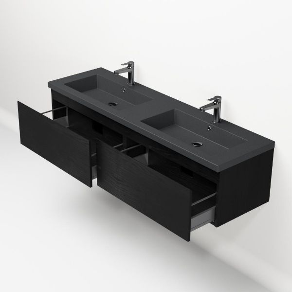 | | Bellanti Solo/Esta-Q badmeubel 160x46 2 softclose laden mat zwart eiken greeploos polystone dubbele wastafel mat grijs 2 kraangaten |